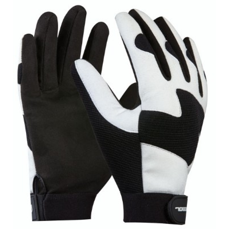 Pracovné rukavice Gebol Commander; Vysokokvalitná profesionálna kvalita so syntetickou kožou, spandex a polyester s bezšvovou dlaňou, tlmia vibrácie, robustný dizajn na zadnej strane ruky, pás na suchý zips pre pohodlné nosenie, vysoký komfort nosenia
