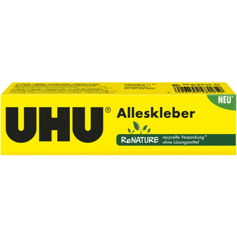 UHU All Purpose Adhesive solvent-free je univerzálne tekuté lepidlo modernej generácie, ktoré neobsahuje žiadne rozpúšťadlá. Je ideálny na každodenné použitie v domácnosti aj kancelárii. Po aplikácii rýchlo schne, má vysokú počiatočnú priľnavosť a zostáva po krátku dobu upraviteľné, čo uľahčuje presné usadenie materiálov. Lepidlo je číre, bez zápachu a zdravotne nezávadné. Pri postriekaní je možné čerstvé zvyšky ľahko zmyť studenou alebo teplou vodou. Po zaschnutí je spoj pevný a odolný voči vlhkosti aj teplotám až do 70 °C.